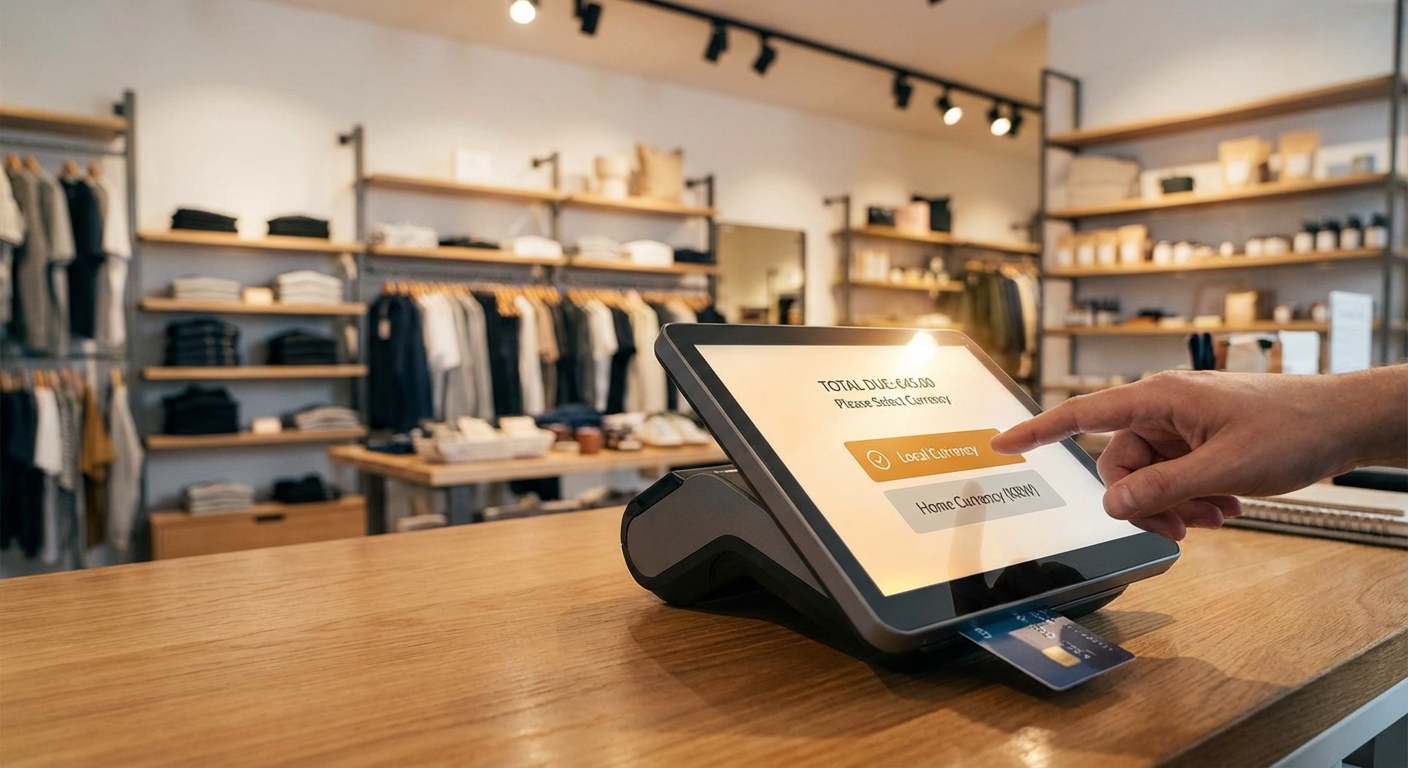 해외에서 카드로 결제할 때 "원화로 결제하시겠습니까?" 또는 "현지 통화로 결제하시겠습니까?" 라는 질문을 받을 때가 있습니다. 이때 무조건 '현지 통화(Local Currency)'로 결제해야 합니다. 원화(KRW)로 결제하는 것은 DCC(Dynamic Currency Conversion, 자국 통화 결제) 서비스로, 이중 환전 수수료가 붙어 더 많은 돈을 내게 됩니다. DCC는 피해야 할 가장 중요한 팁 중 하나입니다!