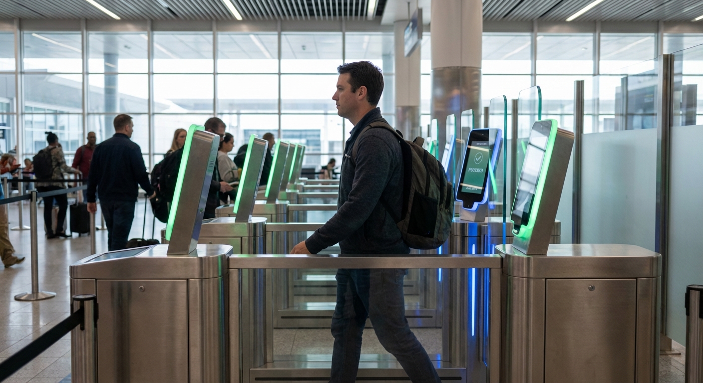 *자동출입국심사 게이트를 통과하고 있는 승객의 모습*